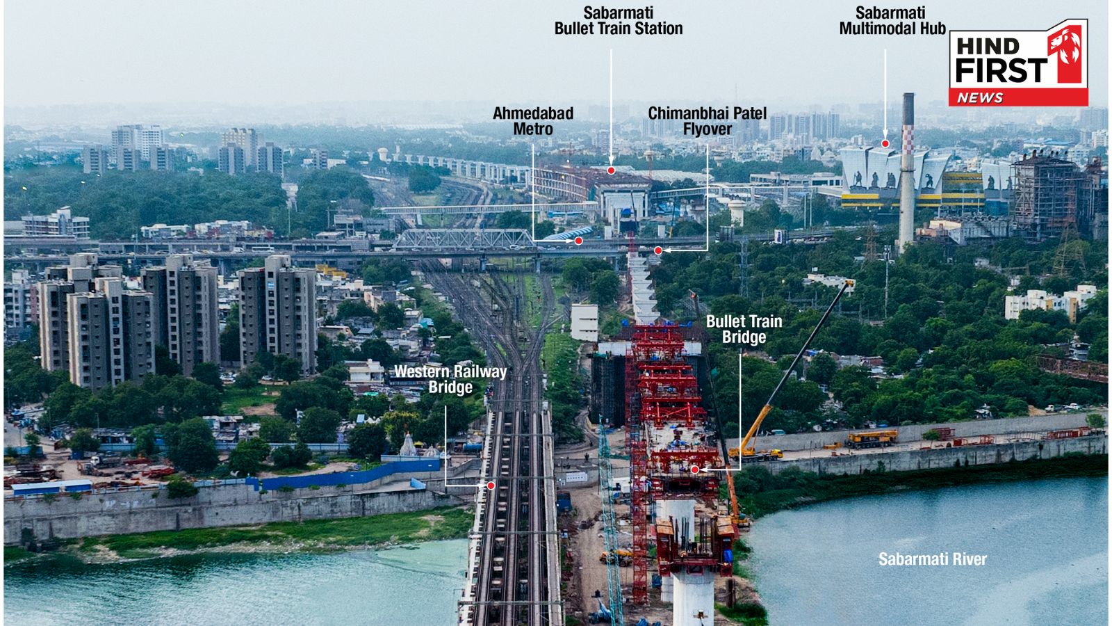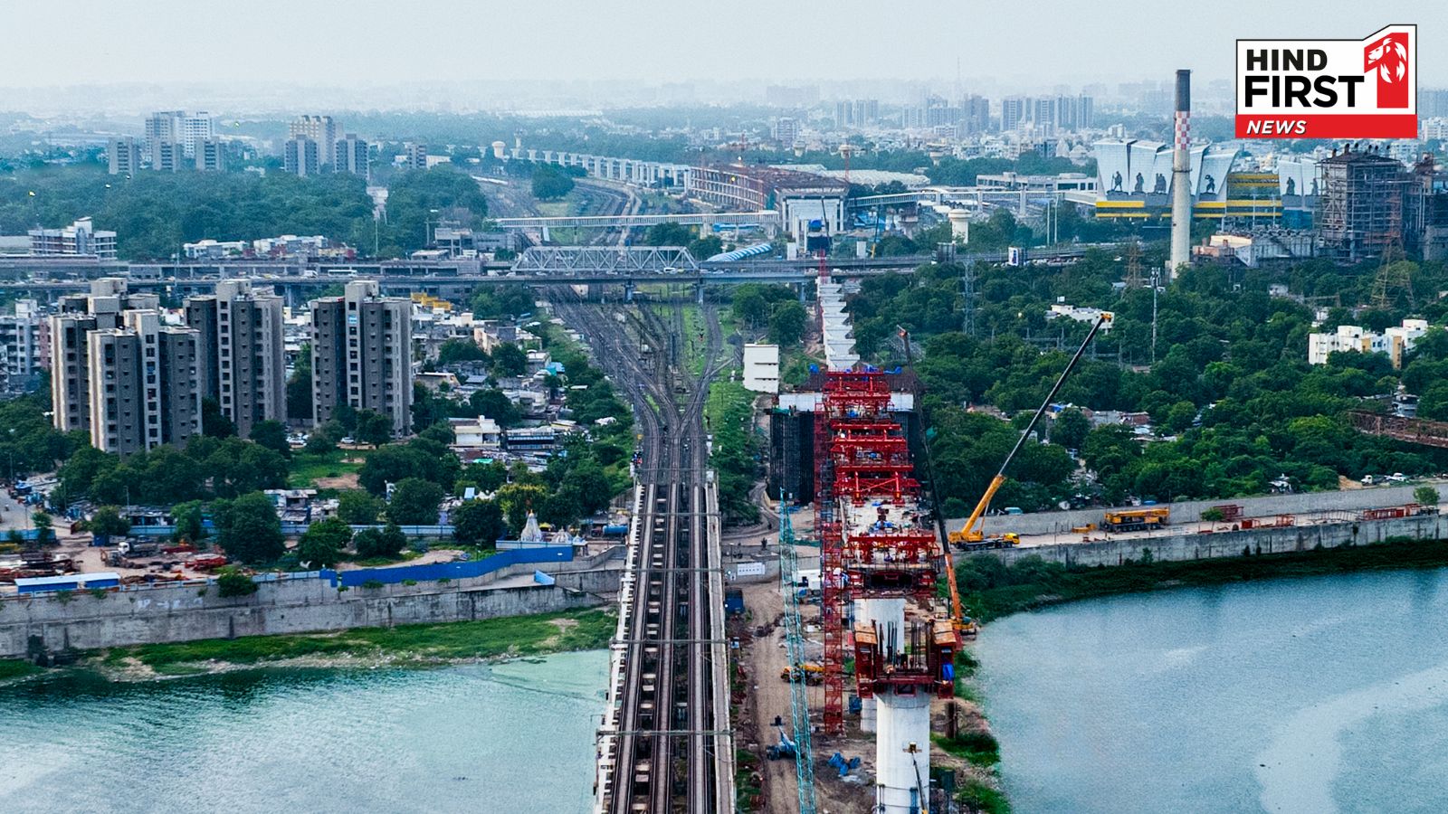 36 Meter Tall Bridge, Equivalent to a 12-Storey Building, Under Construction Over Sabarmati River for Mumbai-Ahmedabad Bullet Train Project