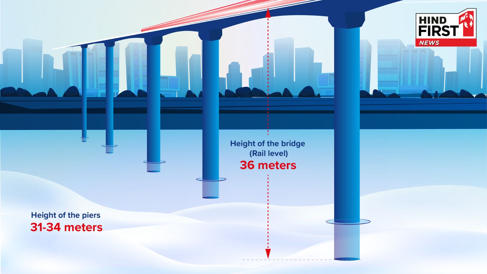 A 36-meter-tall bridge, equivalent to a 12-storey building (approx. 118 feet) is currently under construction over the Sabarmati River in Ahmedabad as part of the Mumbai-Ahmedabad Bullet Train Project. Spanning 480 meters, the bridge is adjacent to the Western Railway’s Ahmedabad–Delhi main line, which is about 14.8 meter tall. Once completed, the bridge will not only stand as a symbol of modern connectivity but also exemplify harmony between high-speed infrastructure and existing rail network.