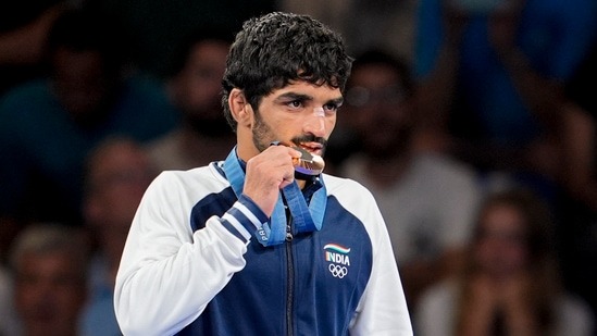 On Day 14 of the Paris Olympics 2024, wrestler Aman Sehrawat elevated India's medal tally from five to six with a bronze medal in the men’s 57kg freestyle category. This achievement made Sehrawat the first Indian wrestler to win a medal in Paris 2024 and the youngest Indian wrestler to claim an Olympic medal. He joins an esteemed list of Indian wrestlers who have won Olympic medals, including KD Jadhav, Sushil Kumar, Yogeshwar Dutt, Sakshi Malik, Bajrang Punia, and Ravi Dahiya.