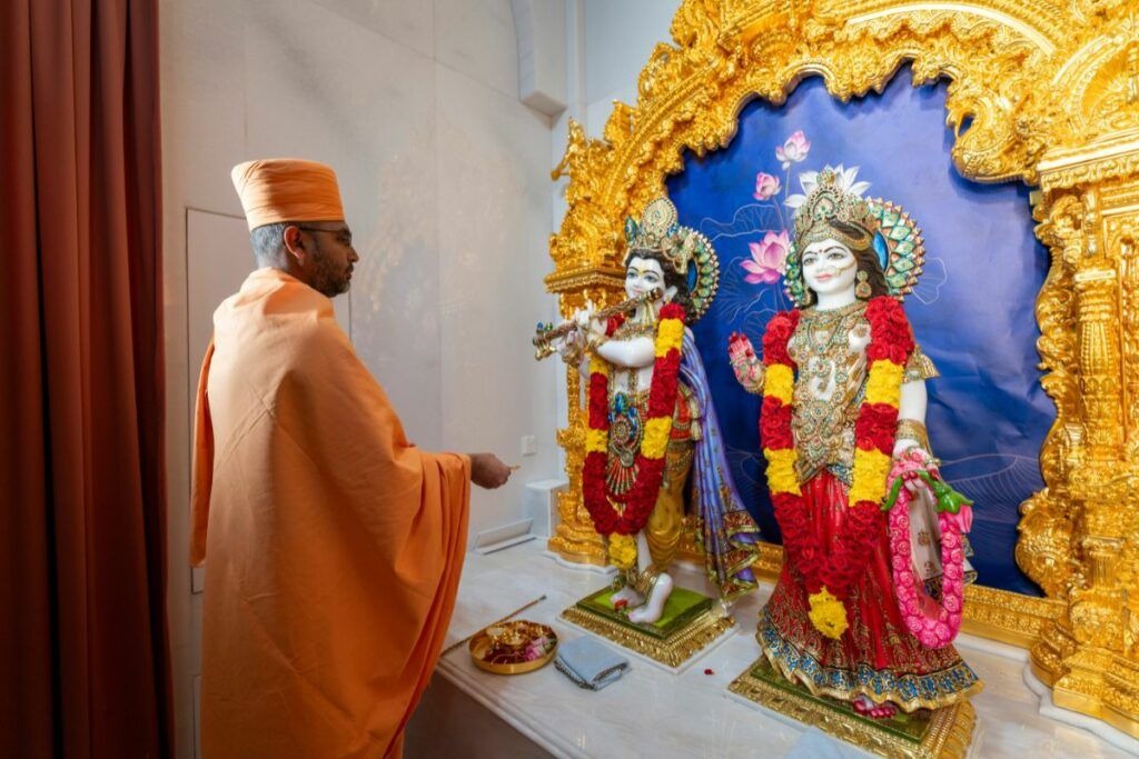 While the day commenced before dawn as hundreds of devotees and volunteers arrived at 4:00 AM to prepare for the Mahapuja, a sacred ritual seeking peace and prosperity for all. As a sign of devotion, Jigisha Joshi explained her enthusiasm for offering service so early on her weekend: “I have been blessed with the opportunity to serve our community and offer devotion in this beautiful Mandir. By serving others, is my way of offering gratitude to God”. More than 1,100participants took part in this divine ceremony at 6:00 AM, offering their prayers with deep devotion.This Mahapuja was a truly unique experience in that it blends of technology and spirituality, with special projections on the Mandir displaying various rituals, enhancing the devotional experience for all attendees.