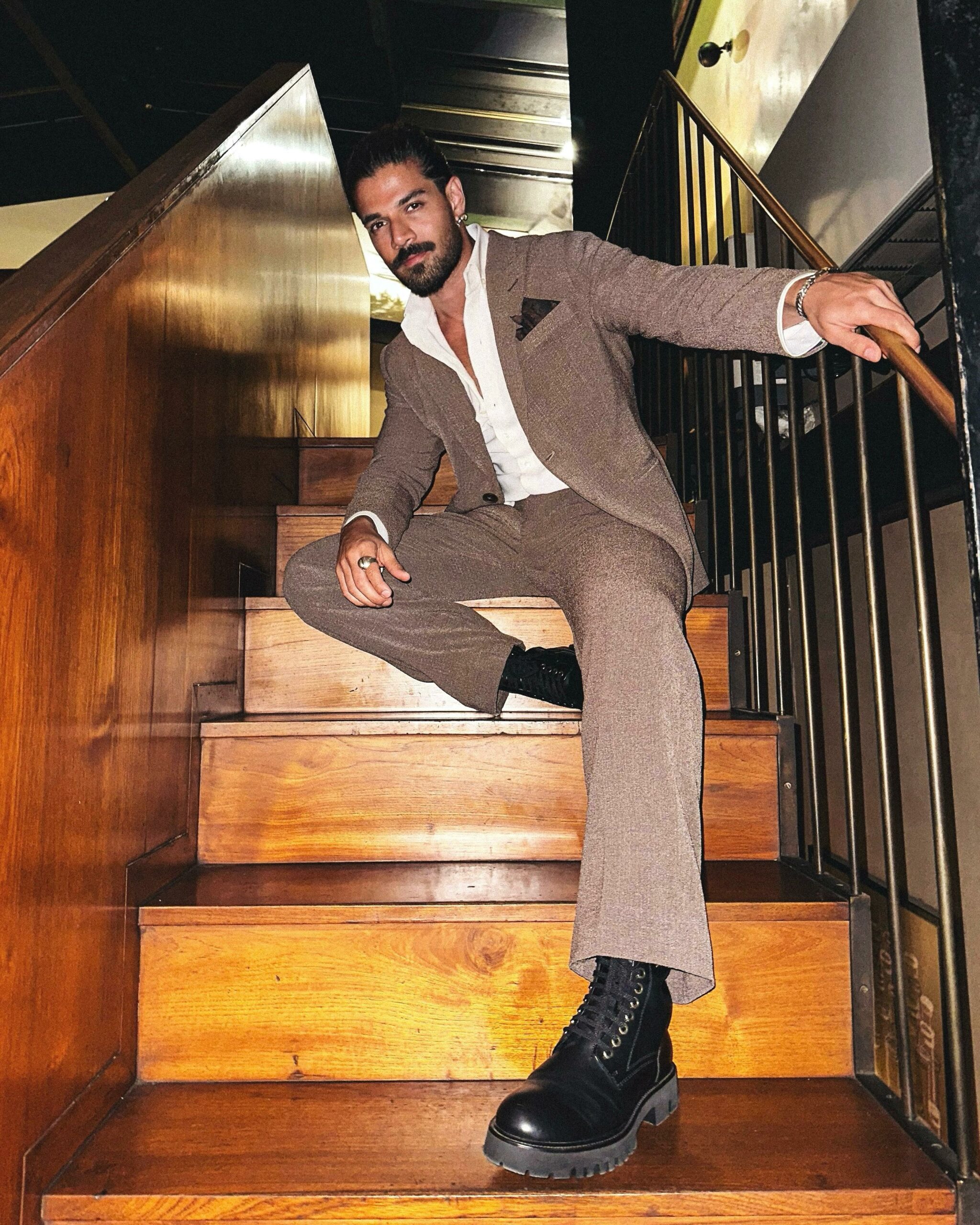 Sooraj Pancholi oozed raw energy by sporting a rustic grey suit. He highlighted the suit’s contrast by pairing it with a classic white shirt with open collars - letting in more air flow to beat the heat! The ‘Kesari Veer’ actor exuded urban class by styling his hair in a man bun, accessorising his outfit with earcuffs, ring, and a bracelet, and completing his look with black derby boots.