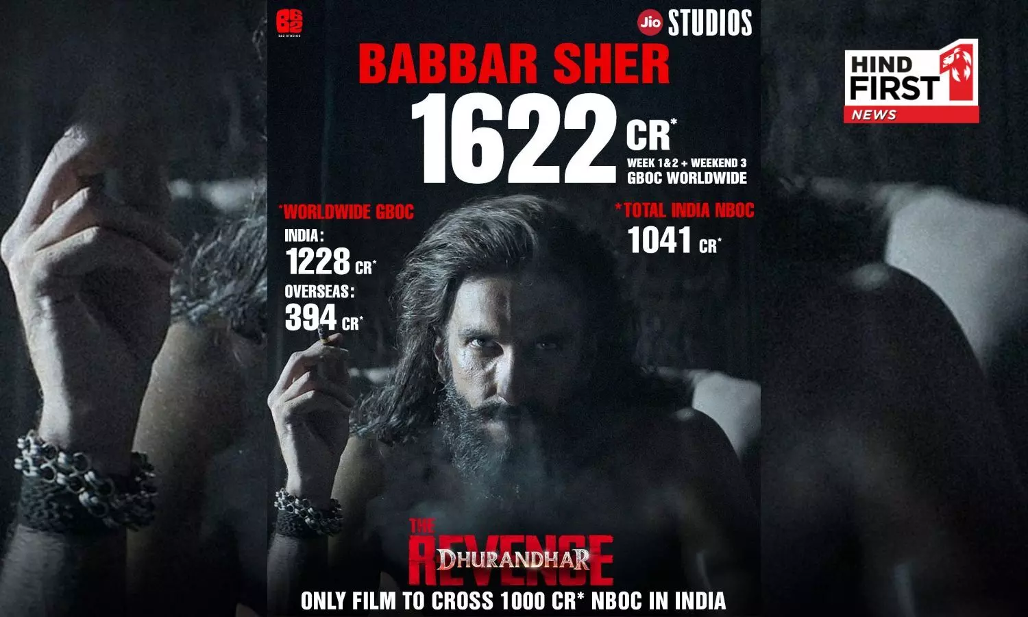 Jio Studios & B62 Studios’ Aditya Dhar directorial #DhurandharTheRevenge continues its unprecedented box-office domination, crossing the monumental ₹1,000 Crore nett milestone in India by the end of its third weekend, setting a new benchmark as the biggest Indian blockbuster of all time. With a staggering ₹1,622 Crore worldwide gross, the film has further cemented its position as a global phenomenon, redefining the scale and reach of Indian cinema across markets.