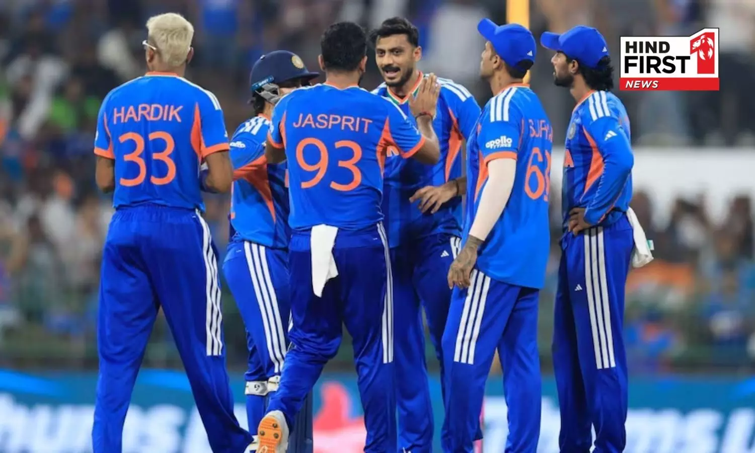 The squad includes Ishan Kishan, Abhishek Sharma, Suryakumar Yadav, Tilak Verma, Rinku Singh, Hardik Pandya, Axar Patel, Shivam Dube, Kuldeep Yadav, Varun Chakravarthy, Jasprit Bumrah, Mohammed Siraj, Sanju Samson, Washington Sundar and Arshdeep Singh.