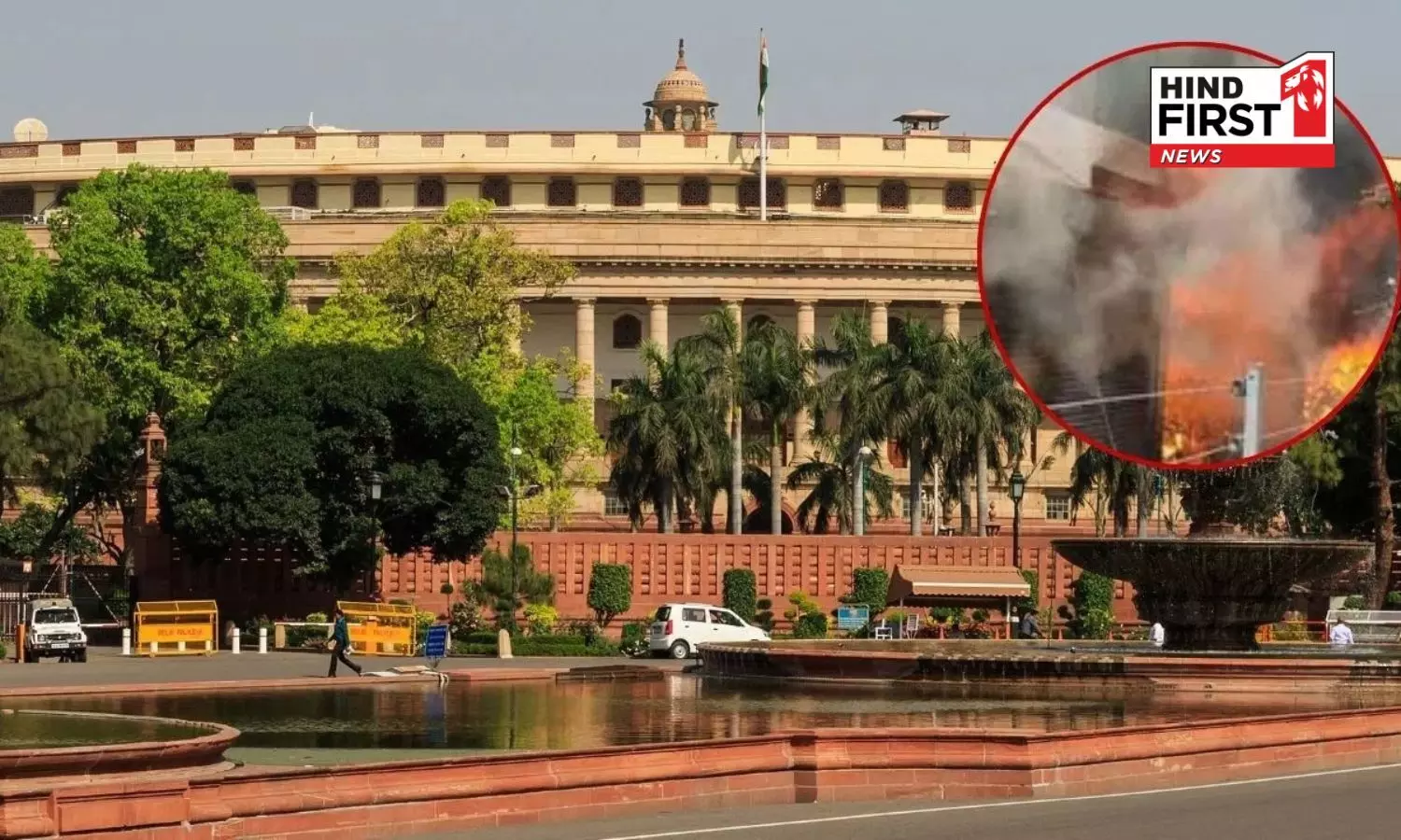 The sudden outbreak of fire on the roof of the old Parliament building caused a brief commotion. The incident occurred around 5:40 PM. Welding work was being carried out on the roof as part of repair operations. The fire ignited during this process. It is reported that sparks generated during the welding caused the fire. However, the blaze was brought under control within minutes. The CISF fire team immediately extinguished the fire.