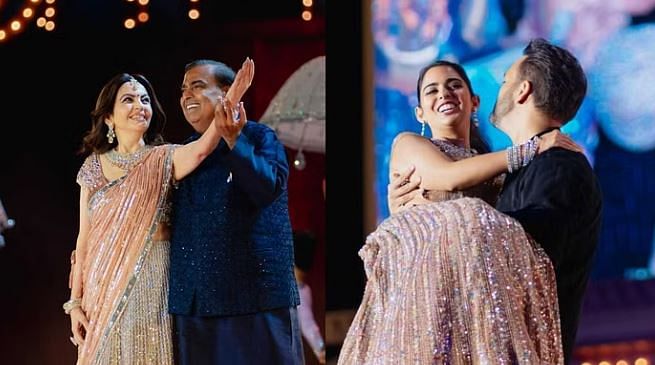 Numerous VVIPs are present at the Ambani family's festival, but it's the Ambani family itself that has captured everyone's attention. The couple dance by Mukesh Ambani and Nita Ambani mesmerized everyone, with viral photos circulating on social media. Additionally, Mukesh Ambani's daughter and son-in-law, Isha Ambani and Anand Piramal, drew attention with their dance performance.