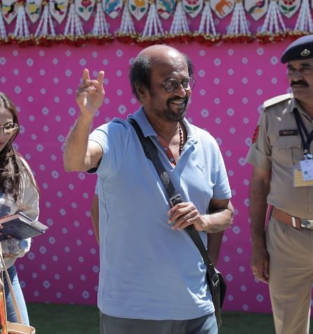 The mega superstar Rajinikanth from South India joined the Ambani family's celebration in Jamnagar today. Notably, Rajinikanth, accompanied by his family, arrived to participate in this grand event.