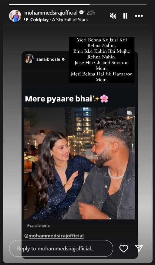 Ending the speculations, Mohammad Siraj addressed the rumors by sharing a heartfelt post on social media. He wrote, "Meri Behna Ke Jaisi Koi Behna Nahin. Bina Iske Kahin Bhi Mujhe Rehna Nahin. Jaise Hai Chaand Sitaaron Mein. Meri Behna Hai Ek Hazaaron Mein." (There is no sister like my sister. I cannot live anywhere without her. As there is moon in the stars, my sister is one in thousands)