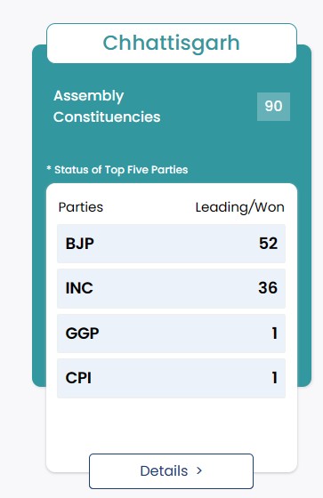 The BJP has also surpassed the halfway mark in Rajasthan and Chhattisgarh, as per the latest Election Commission of India trends. The Rajasthan assembly has 199 seats, with the halfway mark at 100. The BJP is currently leading in 112 seats in Rajasthan and 53 seats in Chhattisgarh. Voting for the five states took place between November 7 to November 30. Also Read: Assembly Elections 2023: Shivraj Singh Chouhan expressed his gratitude to PM Modi for BJP’s performance OTT India updates you with the latest news, Country’s no.1 digital news platform OTT India, Keeps you updated with national, and international news from all around the world. For more such updates, download the OTT India app on your Android and IOS device.