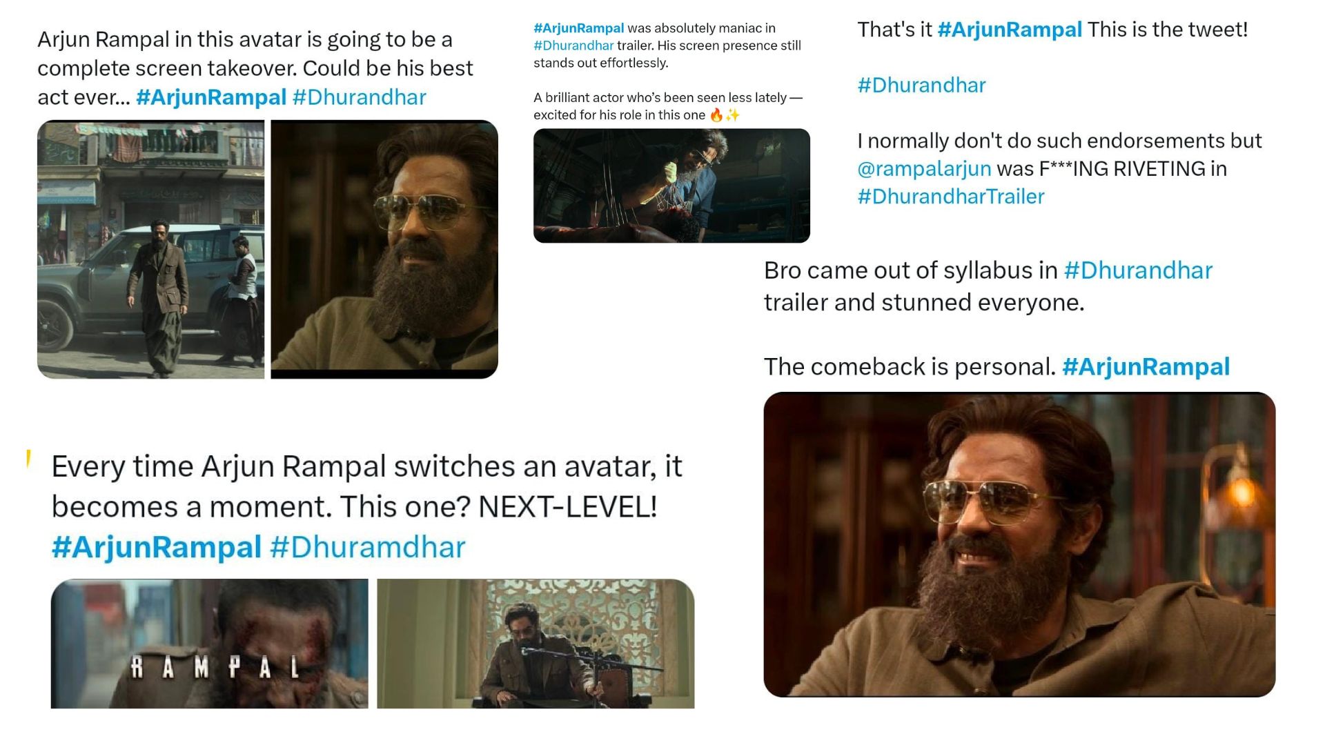 Arjun Rampal opens up the riveting trailer of Dhurandhar with a scene so intense that it puts his unbelievable acting range on full display! With a character so deadly, raw, and gritty, Arjun sets a new benchmark for ‘performance’, and it has struck a chord with the audiences. Rampal’s fans and cinephiles can’t keep calm about the fury that he is gearing up to unleash as the Angel of Death, aka ISI Major Iqbal, setting the tone for something entirely unexpected! Also Read: Wamiqa Gabbi’s New Photos Spark a Quiet Echo of Aishwarya Rai’s Nandini X, formerly known as Twitter, is flooded with excitement to watch Arjun Rampal in the darkest shade of a dark character. A user wrote, “Arjun Rampal was absolutely maniac in Dhurandhar trailer. His screen presence still stands out effortlessly. A brilliant actor who’s been seen less lately - excited for his role in this one,” and another wrote, “Every time Arjun Rampal switches an avatar, it becomes a moment! This one? NEXT LEVEL!” A comment read, “This is Arjun Rampal! This is the tweet! I normally don’t do such endorsements but Arjun Rampal was f***ing riveting in Dhurandhar trailer,” and another read, “Arjun Rampal in this avatar is going to be a complete screen takeover. Could be his best act ever!” A user wrote, “Bro came out of syllabus in Dhurandhar trailer and stunned everyone! The comeback is personal,” and another wrote, “Arjun Rampal stepping into a whole new vibe - this avatar is a total power move. Counting days to witness the storm!” A fan simply wrote, “What an introduction shot for Arjun Rampal in Dhurandhar trailer! The man looks absolutely menacing, setting the record straight that you do not mess with him no matter what. Hope this character has enough weight and length to give us a great antagonist. Too good!”