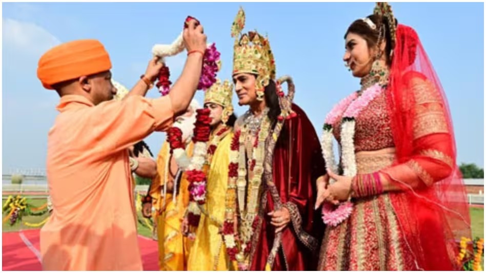 Ram-Janaki was worshipped and Bharat Milap was also performed. Yogi Adityanath performed the coronation of Shri Ram on the stage. During the coronation ceremony, Ramkatha Park echoed with chants of Jai Shri Ram. CM Yogi also applied tilak and garlands to Shri Ram, Lakshman, Bharat, Shatrughan, and Guru Vashishtha, and performed aarti."They opened fire, we are lighting lamps,"