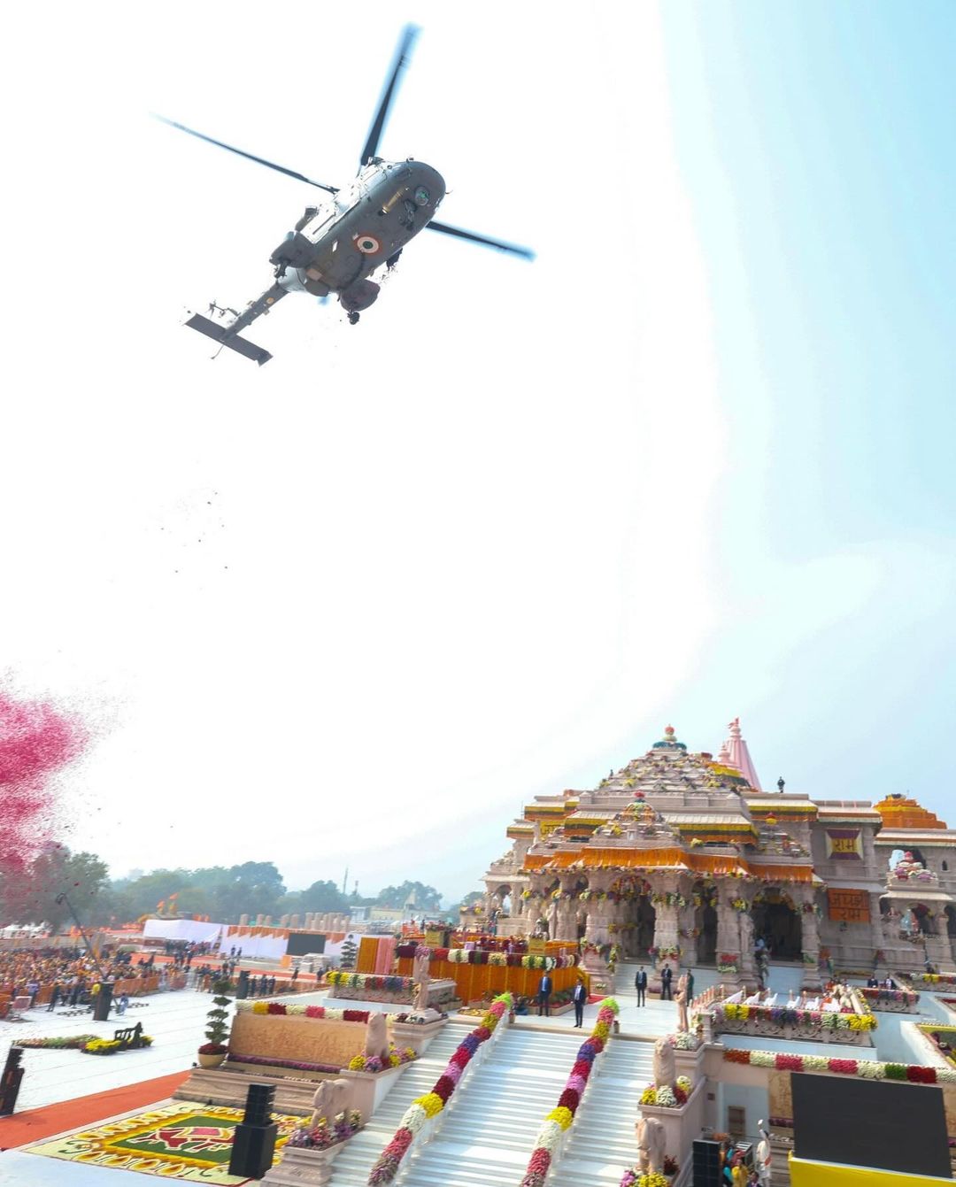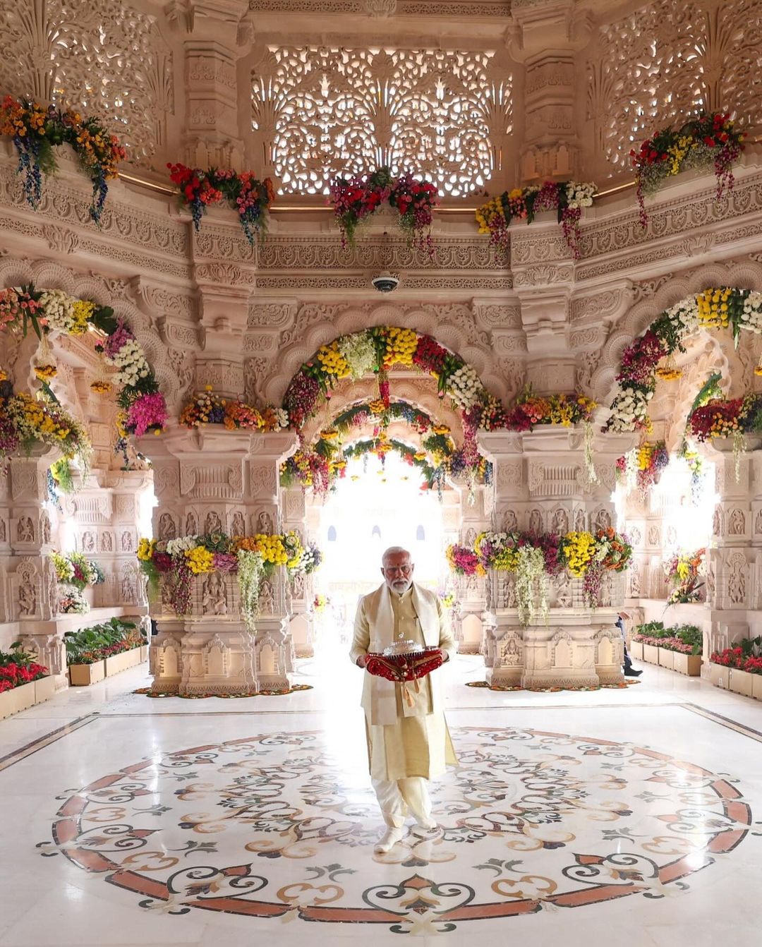 As part of the ceremony, the Prime Minister walked within the temple premises, carrying a silver 'chattar' (umbrella) adorned with a red folded dupatta.