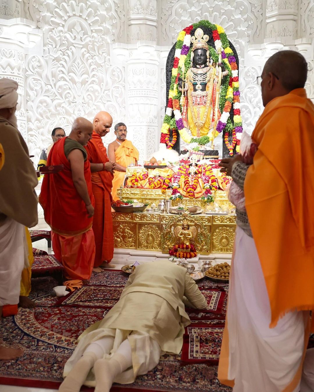 Among those present during the rituals were RSS Chief Mohan Bhagwat, Uttar Pradesh Governor Anandiben Patel, and Chief Minister Yogi Adityanath, all inside the sanctum.
