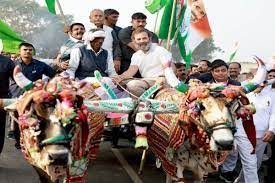 Bharat Jodo Yatra : Rahul Gandhi enjoying the ride of bullock cart.