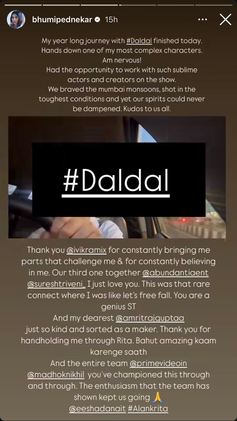 Bollywood actress Bhumi Pednekar has officially completed filming for her highly anticipated web series Daldal.