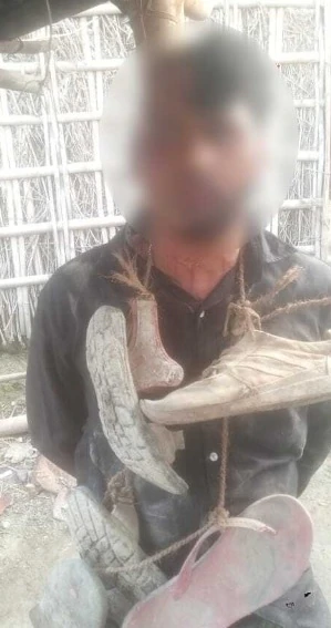 In Bihar's Katihar district, a man named Anand faced a brutal ordeal, including severe beatings, forced head tonsuring, beard shaving, and being adorned with a garland made of shoes. These horrific actions were taken after a woman accused him of molesting and harassing her.