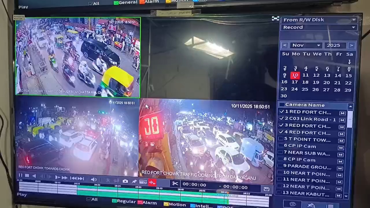 Live video of the blast shows the car of suspected Jaish terrorist Umar exploding. The Red Fort and Chandni Chowk are also monitored by CCTV. See how the explosion appears to be a bright red balloon in the CCTV control room. Red Ford Chowk is clearly visible on the CCTV, which captured the blast. Also Read: CCTV footage before the Delhi blast has surfaced, revealing the identity of terrorist Dr. Umar The exact time of the blast is visible in this CCTV footage. You can see in the CCTV footage of this four-window area how the crowd is moving. Meanwhile, a powerful blast is captured on CCTV. People are also seen running after the blast.