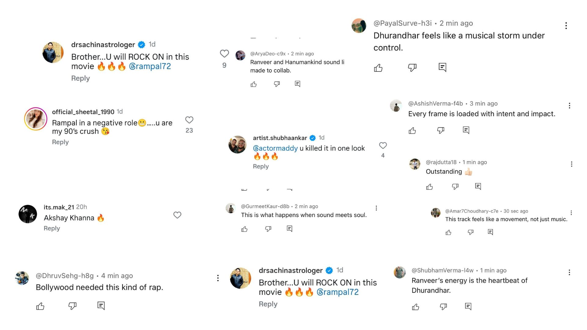 A storm is unleashed as Saregama India, in association with Jio Studios and B62 Studios, unveiled the title track of Dhurandhar, and it’s loaded with energy. The high-octane track marks Hanumankind’s first Bollywood project, and it is already winning over the audience. The song blends modern hip-hop with Punjabi vibes, perfectly complementing the film’s spy action theme. Also Read: Dhurandhar 's First Song Drops – and the Title Track is Pure Fire! Composed by Shashwat Sachdev and Charanjit Ahuja, the track boasts vocals by Hanumankind, Jasmine Sandlas, Sudhir Yaduvanshi, Shashwat Sachdev, Muhammad Sadiq, and Ranjit Kaur. Lyrics are penned by Hanumankind, Jasmine Sandlas, and Babu Singh Maan. Fans have taken to social media to express their excitement about the title track, calling it a “movement” and a “musical storm”. One user wrote, “Bollywood needed this kind of rap,” and another wrote, “Ranveer and Hanumankind sound like they were made to collab.” A comment read, “Ranveer’s energy is the heartbeat of Dhurandhar,” and another read, “This is what happens when sound meets soul.” A user wrote, "Akshaye Khanna🔥," and another wrote, "@actormaddy u killed it in one look," and another wrote, "Rampal in a negative role 😬 you are my 90's crush😘"