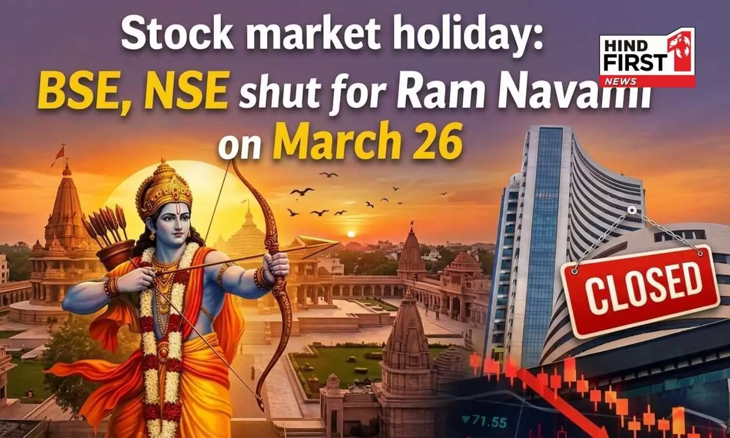 BSE and NSE will remain closed on March 26, 2026, for Ram Navami. Trading will resume on March 27.