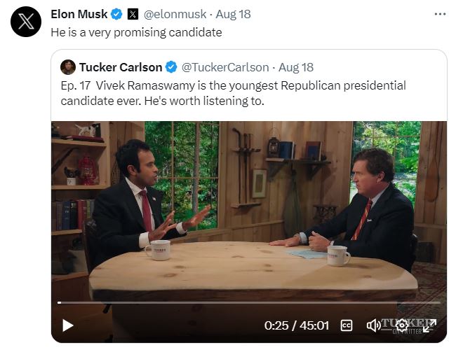 Elon musk supports US Presidential candidate Vivek Ramaswamy