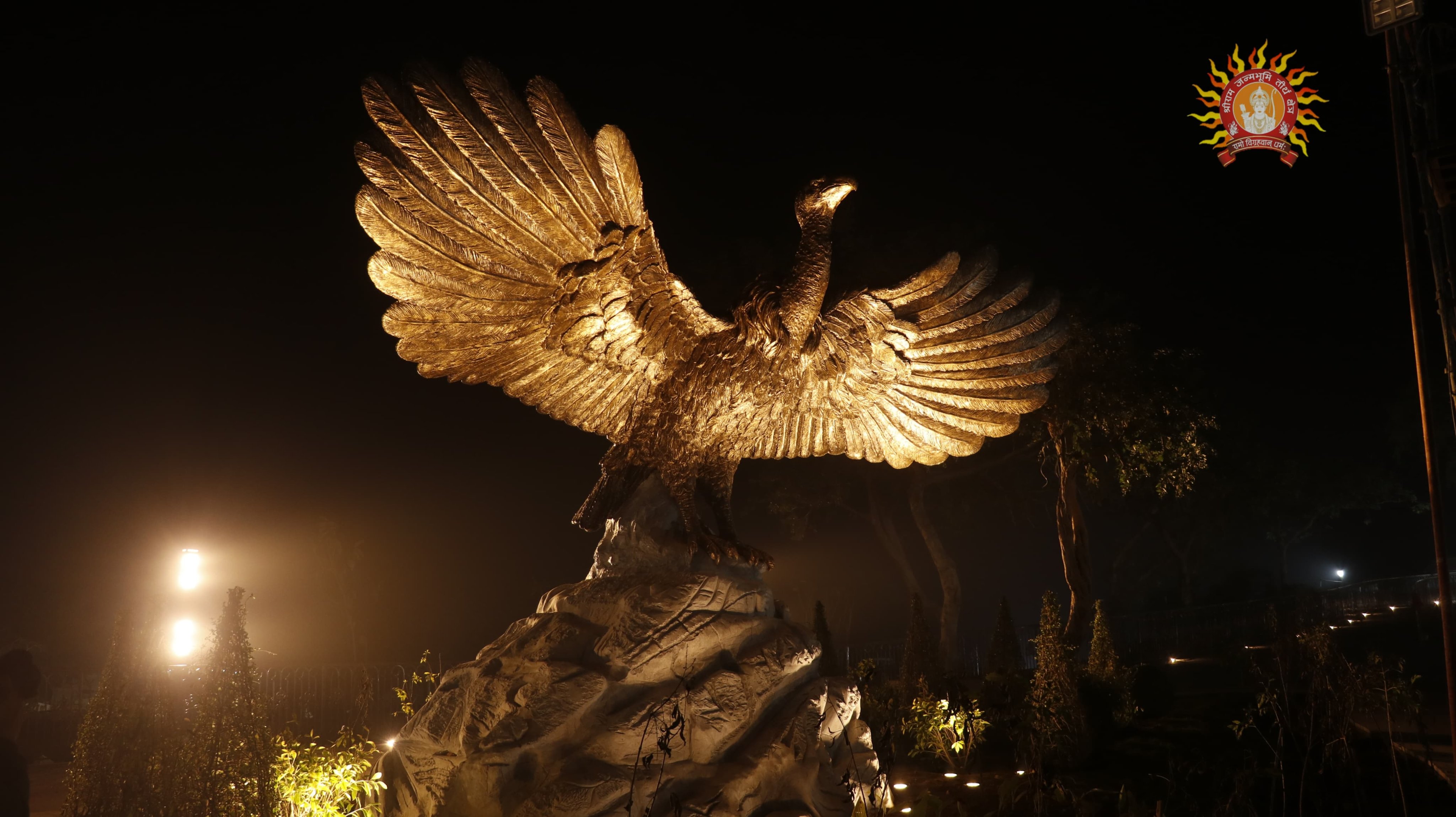 In a captivating showcase of architectural brilliance, the Ram Janmbhoomi Teerth Kshetra Trust delighted the public on Monday by unveiling enchanting photos of the Ram Temple bathed in radiant nightlights. The panoramic view included the majestic statue of Jatayu, prominently displayed on Kuber Fort within the temple premises in Ayodhya.