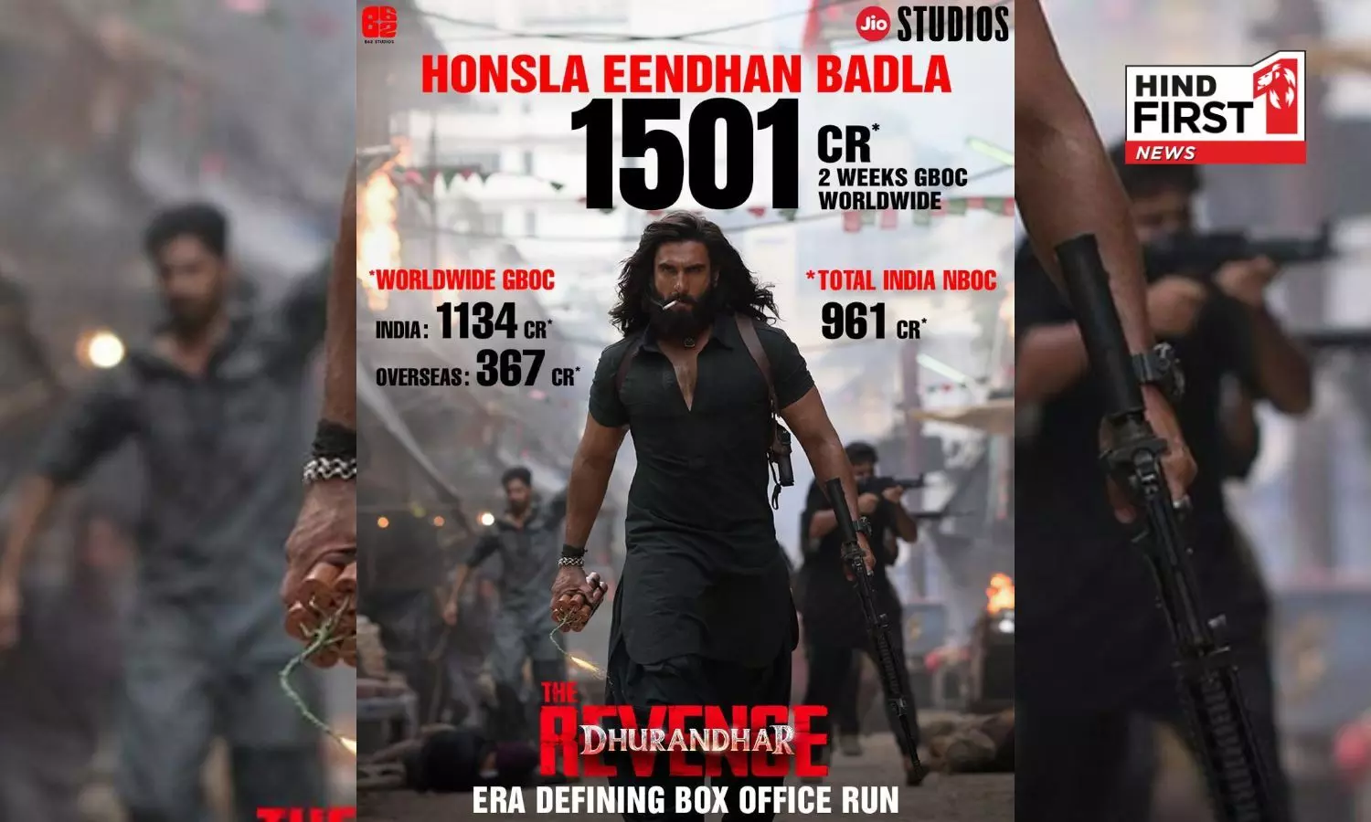 Jio Studios & B62 Studios’ Aditya Dhar directorial #DhurandharTheRevenge continues its historic box-office domination, now just inches away from the coveted ₹1,000 Crore nett milestone in India, earning a phenomenal ₹961 Crores nett by the end of Week 2, a feat never achieved at this pace before.