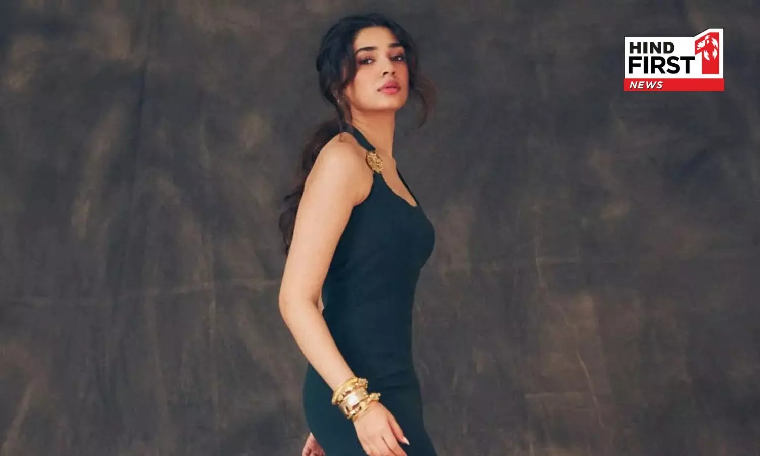 She paired the outfit with bold golden jewellery and statement bangles. The gold accessories contrasted with the black gown and added a strong visual element to the look.