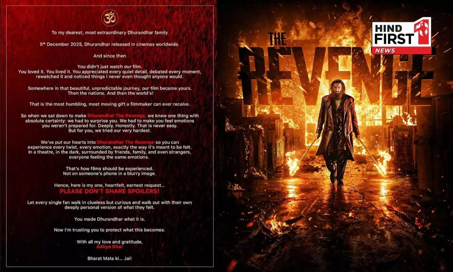Jio Studios and B62 Studios’ much-anticipated film about the unknown men, Dhurandhar The Revenge, releases into cinemas tomorrow, 19th March, with paid previews kicking off today and igniting a storm with early screenings! Ahead of the film’s massive release, director Aditya Dhar has earnestly requested the audience not to share spoilers after watching the high-stakes spy action thriller.