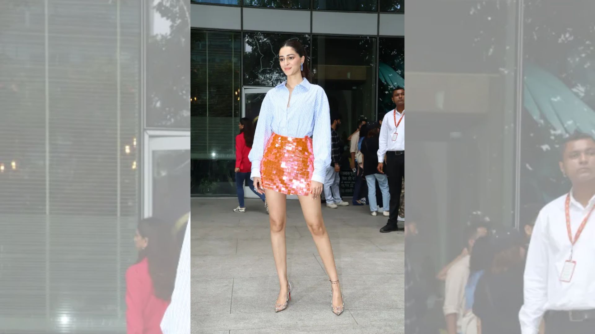 1. Ananya Panday in a Shimmery Skirt and Formal Shirt