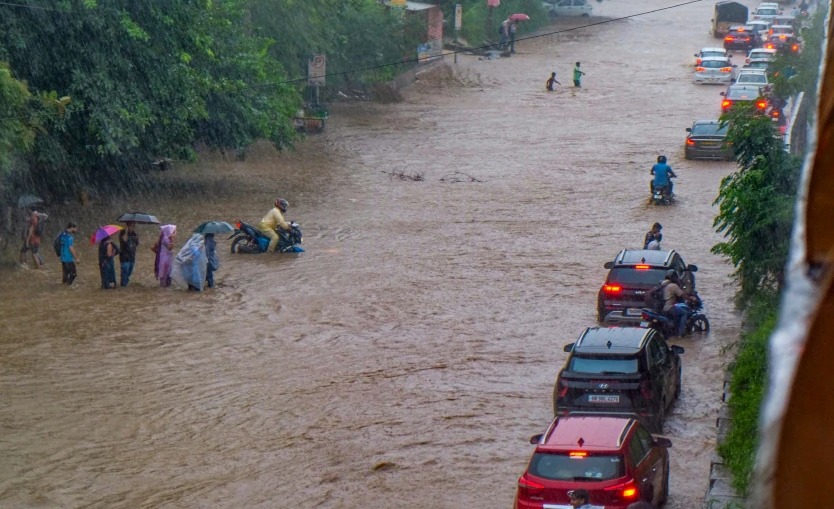Haryana: After the rain since Monday afternoon, flood like situation has arisen in Gurugram, Haryana. Not only this, in many areas, water has filled up to the knees. There is hardly any road in Gurugram which has not turned into a river. The rain which started at around 1.30 pm in the afternoon accumulated water up to three feet on the roads, the effect of which was such that by 9.30 pm, there was a dangerous traffic jam in Gurugram.
