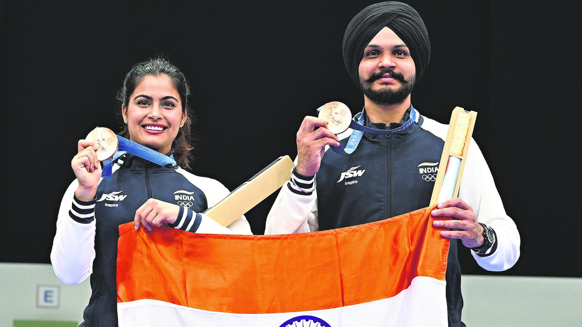 Manu Bhaker kicked off India’s medal haul with a bronze in the women’s 10m air pistol event. The 22-year-old shooter overcame the setbacks of the Tokyo Olympics, where a pistol malfunction cost her a medal. In France, she secured third place with a score of 221.7 after 22 shots.Manu Bhaker and Sarabjot Singh: 10m Air Pistol Mixed Team Event