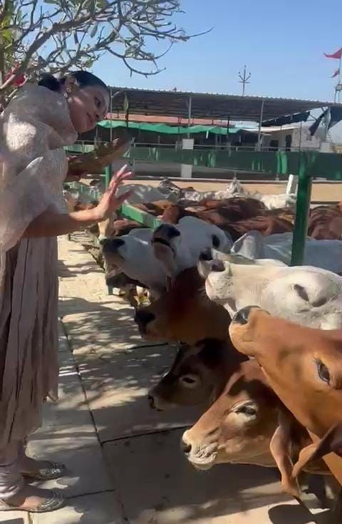 Beyond her temple visit, Isha was also seen feeding cows, an act symbolizing her reverence for nature and animals. Vrindavan is not just a spiritual hub but also a place where devotees express their devotion to Lord Krishna through acts of kindness, and Isha’s gesture beautifully resonated with the essence of the place.