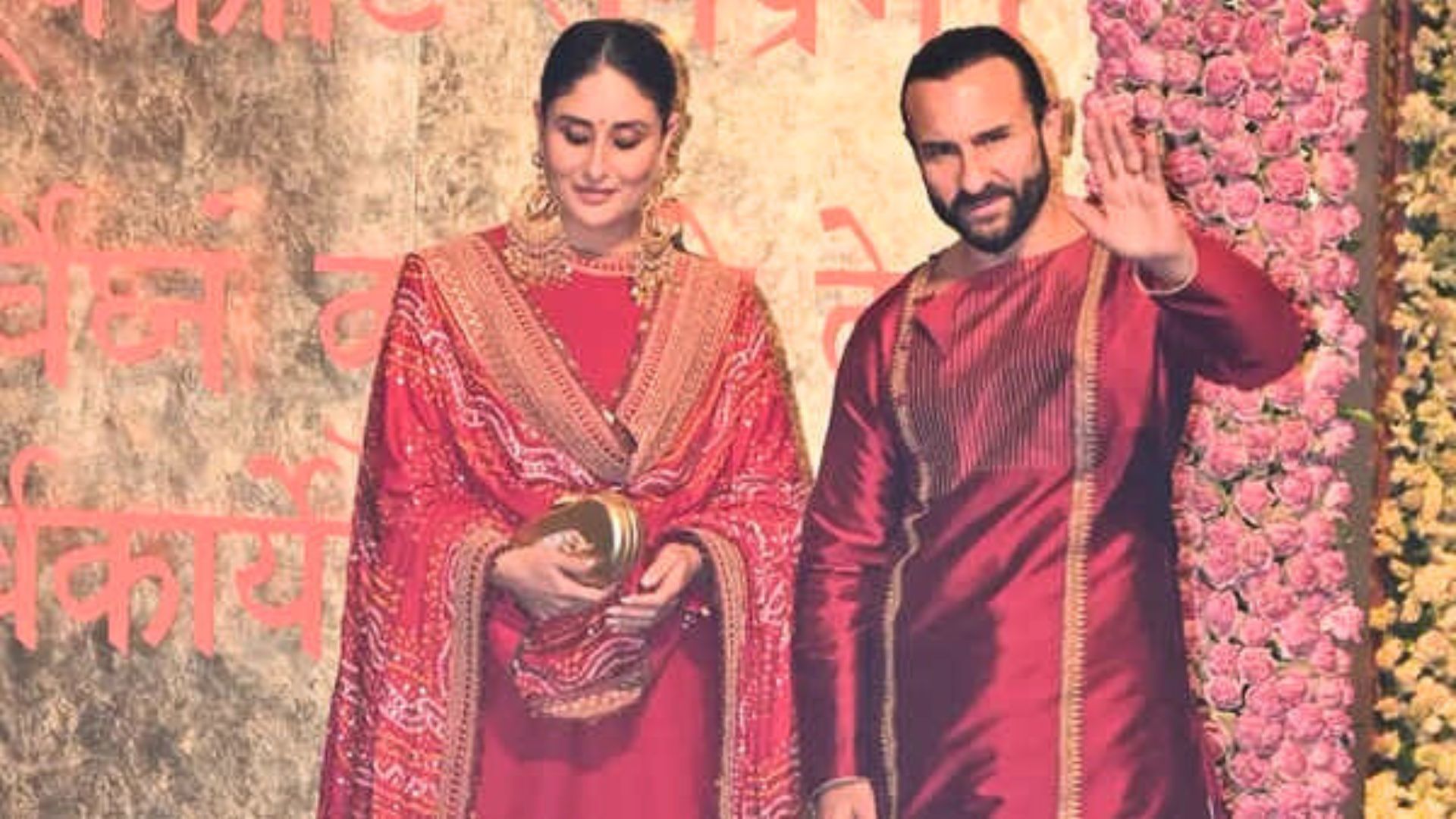 While Kareena’s bold red ensemble was expected, the real surprise came from Saif Ali Khan. He chose to embrace tradition by donning a dark red silk kurta and a white dhoti, designed by Abhishek Roy. The outfit not only showcased his unique style but also paid homage to his Bengali heritage.
