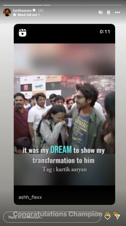 Kartik Aaryan's fan shows her transformation to him! The actor replied, "Congratulations Champion"!