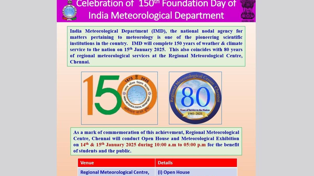 Meanwhile to commemorate the 150th Foundation Day of IMD, a series of programs, activities and workshops have been organized to showcase the achievements of IMD during the last 150 years, its role in making India climate-friendly and the role played by government institutions in providing various weather and climate services.