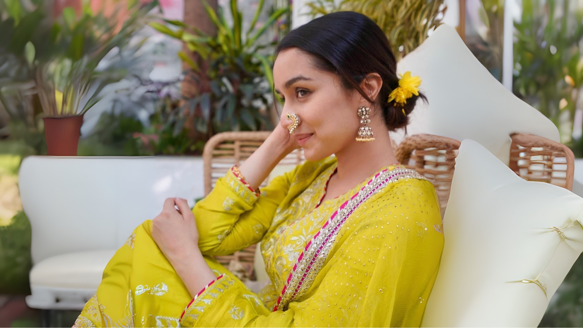 Shraddha Kapoor: Shraddha Kapoor looks as bright as ever in a yellow kurta set with silver details and contrasting borders. She accessorises her look with kundan jhumkas and tops it off with a crescent-shaped nath, giving an entirely different flavour to her outfit. Styling her hair in a loose bun and topping it up with a yellow flower, Shraddha shows how to stay festive-ready with a minimal twist!