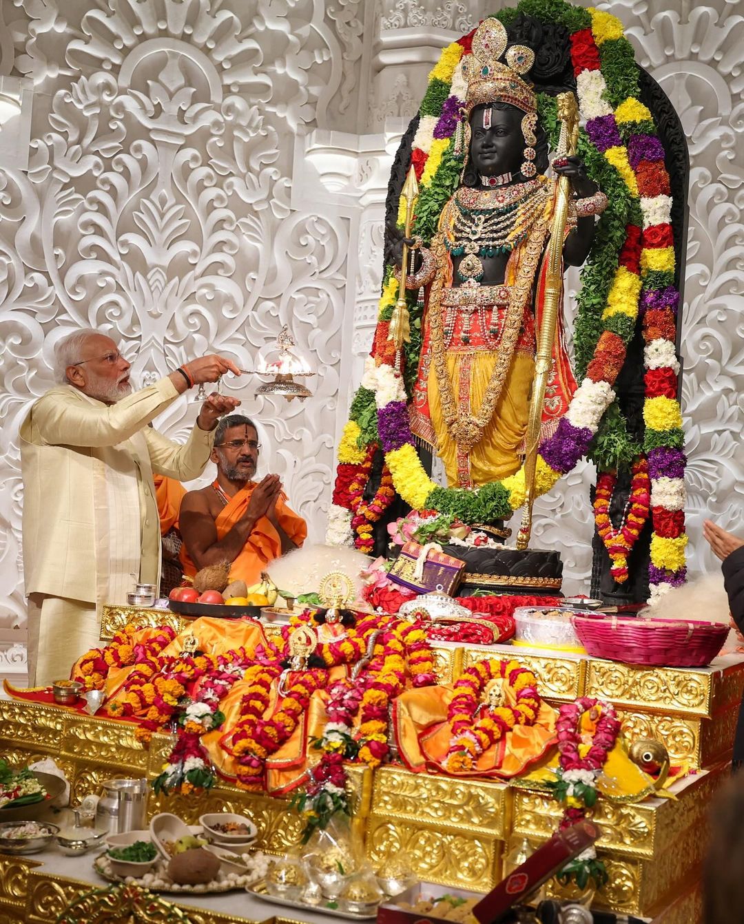 The Pran Pratishtha ceremony featured the unveiling of the Ram Lalla idol after an hour-long ritual, with Prime Minister Narendra Modi leading the proceedings.