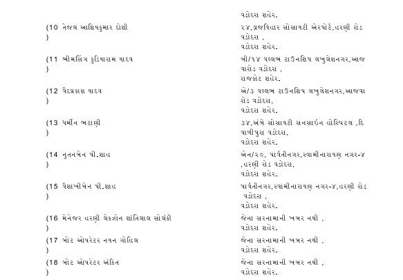 14. Nutanben P. Shah (B.O.48 Res.N/20, Parvatinagar, Swaminarayan Nagar-4,Harani Road Vadodara)