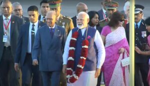 Prime Minister Narendra Modi has reached Mauritius on his two-day visit. Prime Minister Modi was given a grand and warm welcome in Mauritius. Prime Minister Navin Ramgoolam welcomed him by garlanding him at the airport. He was accompanied by the Deputy Prime Minister, Chief Justice of Mauritius, Speaker of the National Assembly, Leader of the Opposition, Foreign Minister, Cabinet Secretary, Chairman of the Grand Port District Council and many others.
