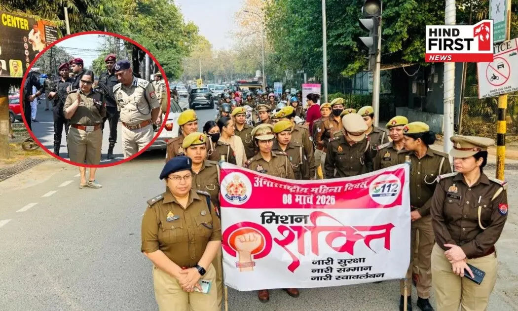 Today the Gautam Buddh Nagar Commissionerate Police organized a scooter and foot rally to promote women's empowerment, safety, and awareness on the occasion of International Women's Day. Police officers shared the message of women's empowerment under the Mission Shakti campaign.