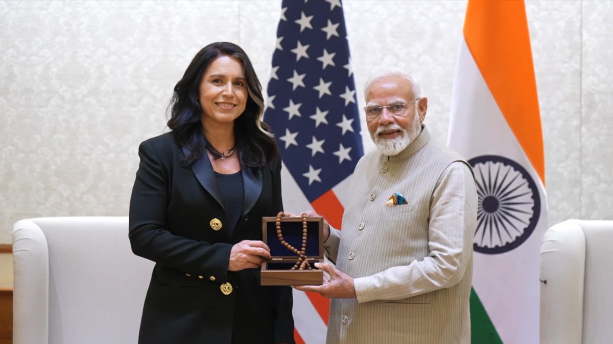 Prime Minister Narendra Modi met US National Intelligence Director Tulsi Gabbard on Monday. During this, he presented Ganga water of Maha Kumbh to her.