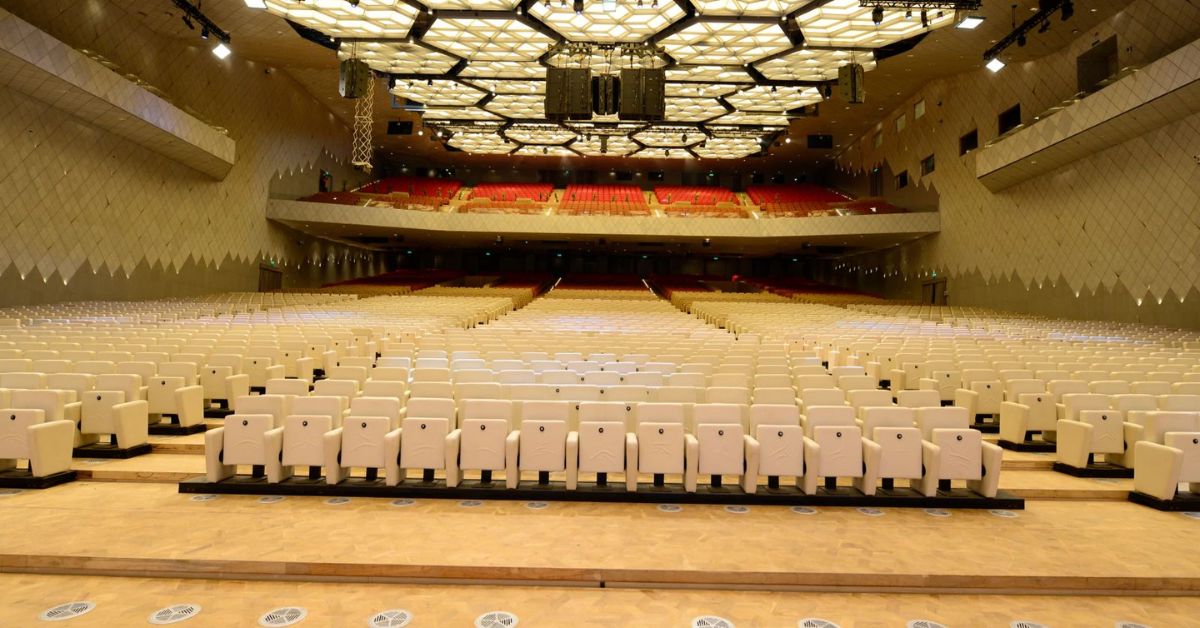 The convention center places a strong emphasis on sustainability. It boasts a modern wastewater treatment system, provisions for rainwater harvesting, and has been awarded Platinum certification by the Indian Green Building Council. To enhance connectivity, a new Metro station named 'YashoBhoomi Dwarka Sector 25' was also inaugurated, linking this iconic venue with the Delhi Metro Airport Express. YashoBhoomi ranks among the world's largest MICE (Meetings, Incentives, Conferences, and Exhibitions) facilities, spanning over 8.9 lakh square meters, with a built-up area exceeding 1.8 lakh square meters. The convention center occupies more than 73,000 square meters and includes 15 convention rooms, including the main auditorium, a ballroom, and 13 meeting rooms, with a collective capacity of 11,000 delegates. Key Facilities at YashoBhoomi: 1. The Auditorium: This plenary hall can accommodate around 6,000 guests and features an innovative automated seating system, allowing for various seating configurations.