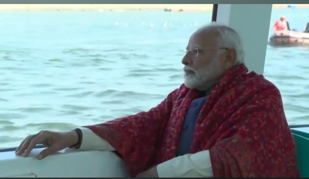 The Prime Minister Narendra Modi has reached Sangam city Prayagraj. He will inaugurate 167 projects worth Rs 5500 crore by placing Kumbh Kalash here. For the safe organization of the world's largest spiritual gathering, Prime Minister Narendra Modi will also perform Kumbhabhishekam during Triveni Pujan on Friday. In the meanwhile, PM will establish Kumbh Kalash on the banks of the holy Triveni. After this, the Prime Minister will inaugurate 167 projects worth about Rs 5500 crore.