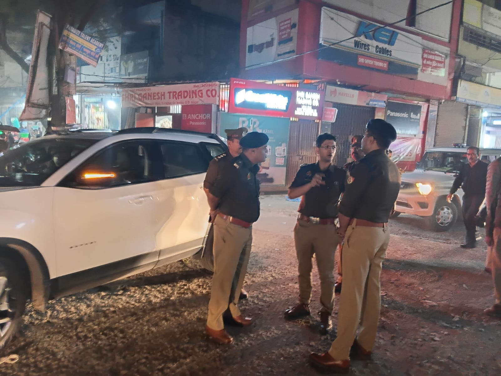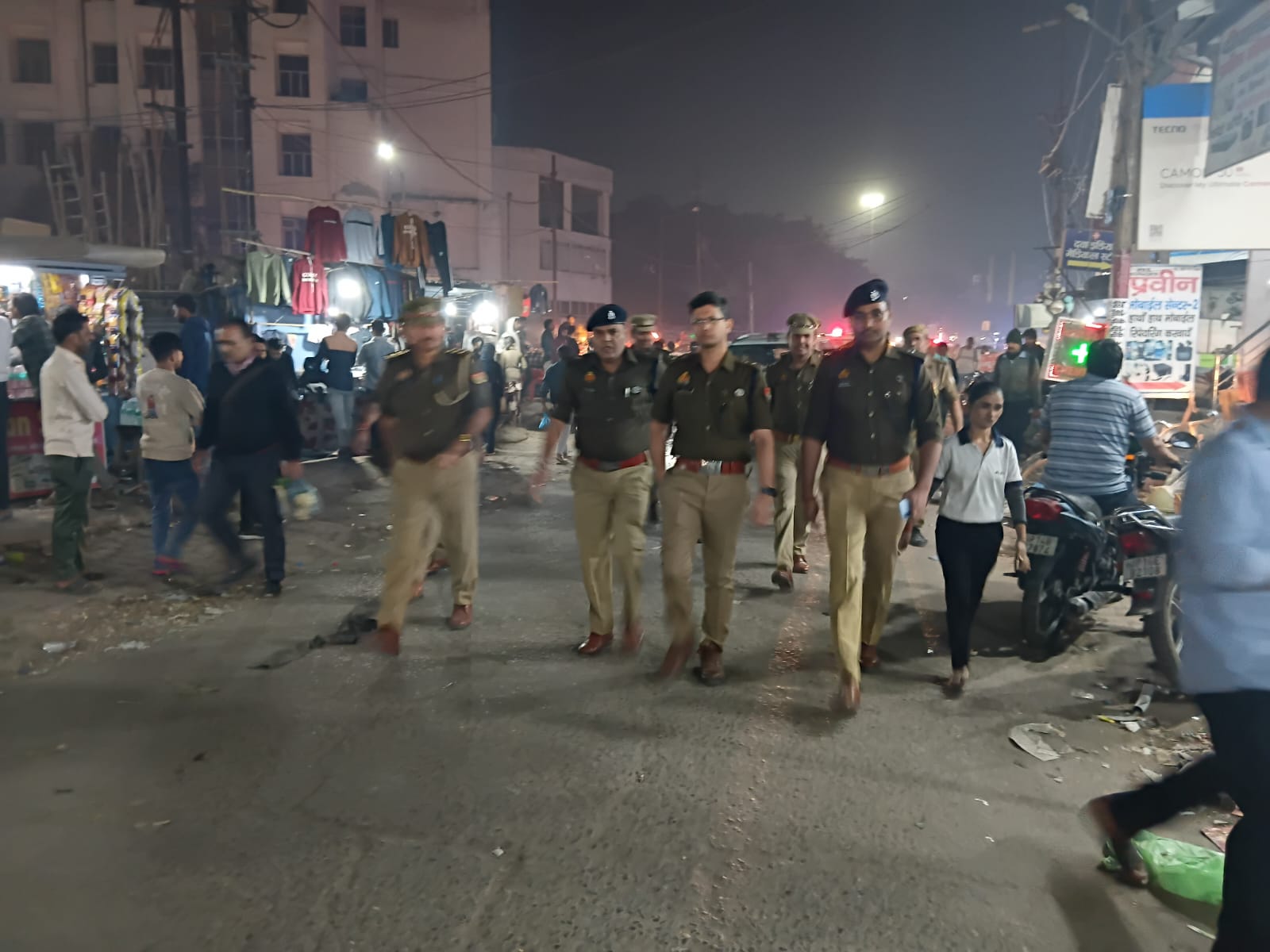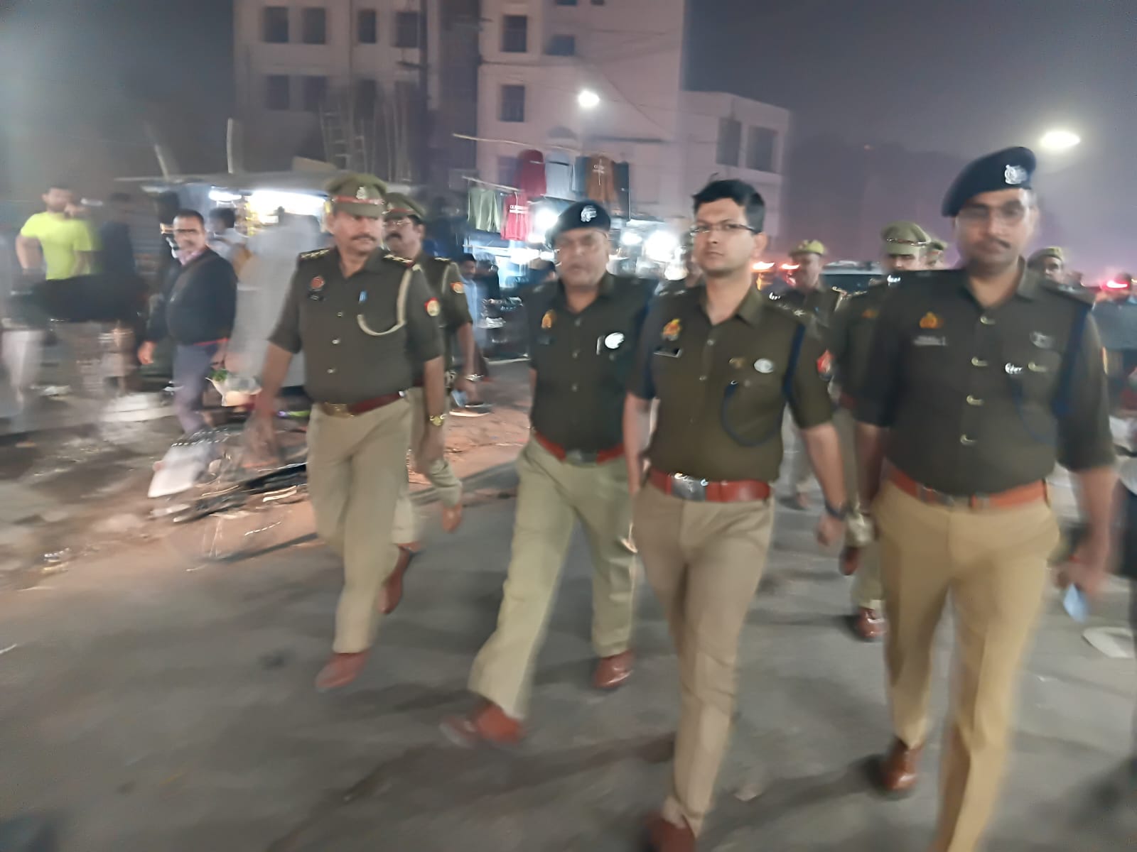 Under the direction of Police Commissioner Gautam Budh Nagar, Mrs. Laxmi Singh, DCP Central Noida, Mr. Shakti Mohan Awasthi, along with ADCP Central Mr. Santosh Kumar and ACP-3 Central Mr. B.S. Veer Kumar, conducted a thorough security inspection today by foot patrolling the markets and main roads in the Surajpur police station area.