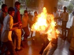 Lucknow: A man set himself on fire outside the UP Assembly. All though he has been admitted to the hospital in a critical condition . In the meanwhile he alleges that the Sahadatganj police is not taking action in his case. However he had brought petrol with him. Police personnel present on the spot doused the fire with a blanket.