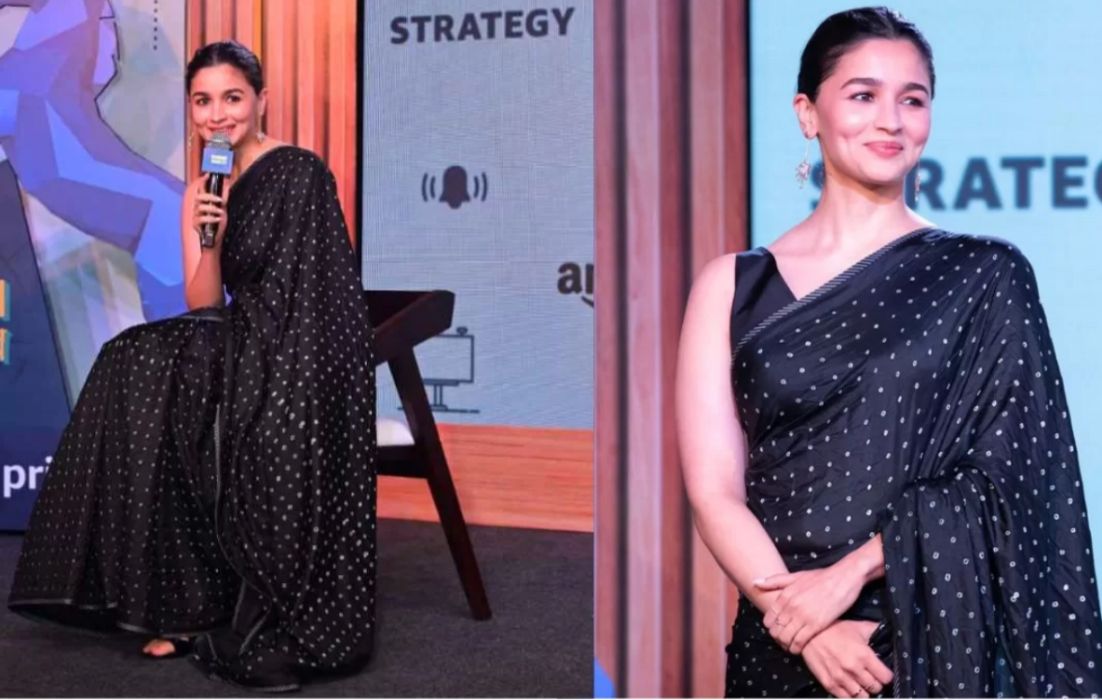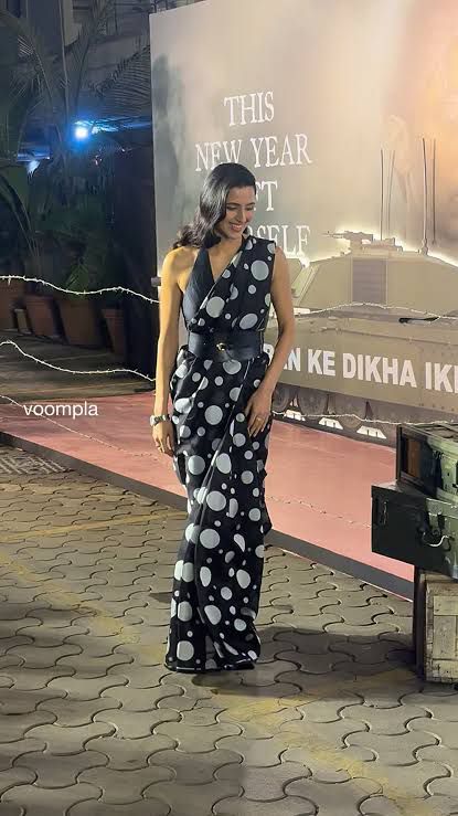Alia Bhatt embraced minimalism in a classic black polka-dot saree, proving that simplicity never goes out of style. Keeping her look understated, the actress opted for neatly pleated hair and minimal styling, letting the elegance of the saree speak for itself. Her effortless approach highlighted how polka dots can look striking even with the most pared-down aesthetics.
