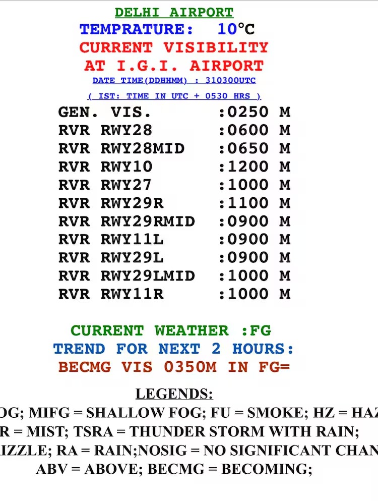 Pollution and Fog Wreak Havoc in Delhi-NCR: Dense fog and toxic air have disrupted life in Delhi-NCR on Wednesday morning, significantly reducing visibility. Due to operational difficulties at Indira Gandhi International Airport, 148 flights were cancelled, including 70 departures and 78 arrivals. In addition, two flights were diverted. Train services have also been severely affected by the fog. Passengers are facing delays and waiting at stations in Delhi due to late trains. Also Read: Grey skies, bitter cold: Delhi’s Twin Crisis Deepens; UP, Uttarakhand to Assam also Badly affected Air Quality Early Warning System has warned that air quality will remain in the 'severe' category on December 31st and January 1st. This situation is due to an unfavorable ventilation index and wind speeds of less than 10 kilometers per hour.