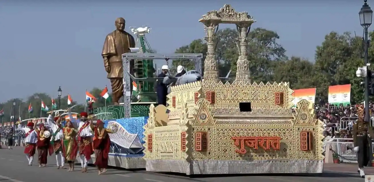 The front part of Gujarat's tableau featured the 12th century 'Kirti Toran', the cultural gateway of Gujarat, built in the Solanki period in Vadnagar, and finally the 21st century pride, the 182-meter-high statue of Sardar Patel, the 'Statue of Unity', which is the world's tallest statue.