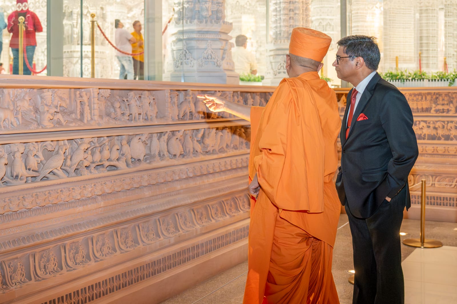 Shri Misri commended its engineering, architectural brilliance and the values the mandir embodies, describing the mandir as “a global symbol of interfaith harmony and cultural dialogue.” He remarked that such places of devotion, built through international collaboration and inspired leadership, can play a powerful role in uniting people across boundaries.