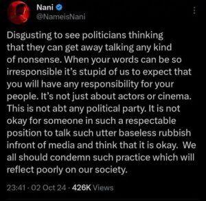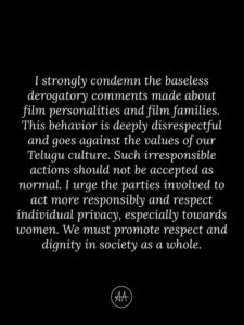 Allu Arjun tweeted that such statements about film personalities and families will not be tolerated. This is a very irresponsible act. South superstar Nani also tweeted on this matter.