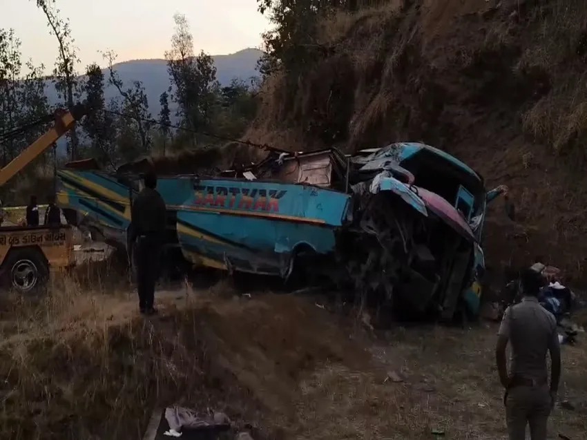 Tragic accident in Gujarat, bus fell into 200 feet deep gorge & was blown to pieces